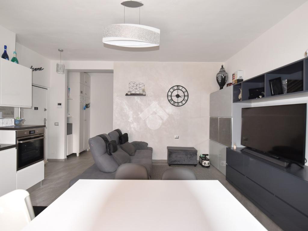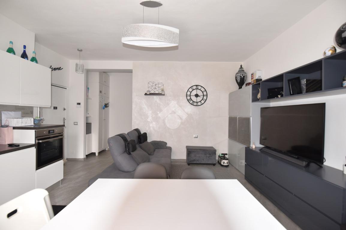 Ingresso su soggiorno luminoso con accesso al primo balcone